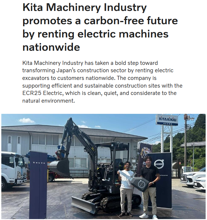 喜多機械産業株式会社による電動建機レンタル事業の取組が、Volvo アジアの公式ニュースに掲載されました。
